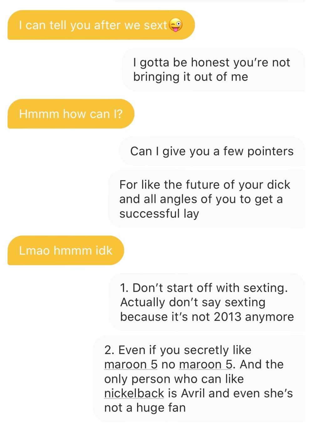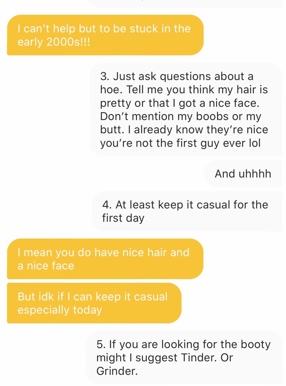 I know there are girls out there who are falling for it. Because I ask some guys if this garbage actually works and they say yes. And if they’re not lying…. I know you just want to feel warm and happy and loved. I’m not judging you for living your best hoe life